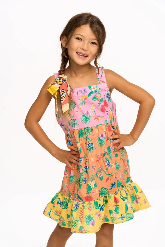 Swing into spring in our multi-colored Girl’s Tropical Floral Nova Tank Dress. Designed with a playful tiered silhouette and breezy fit for a carefree feel.