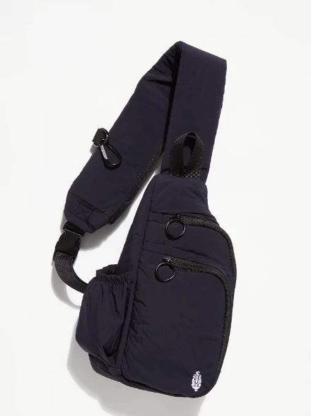 So made to go everywhere, this sporty sling bag is featured in a lightweight design and technical fabrication with zippered exterior pockets, an adjustable crossbody strap, and convenient key clip.