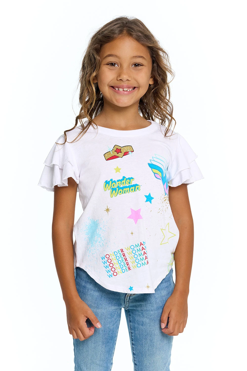 - Wonder Woman Girls Recycled Vintage Jersey Flutter Sleeve Tee