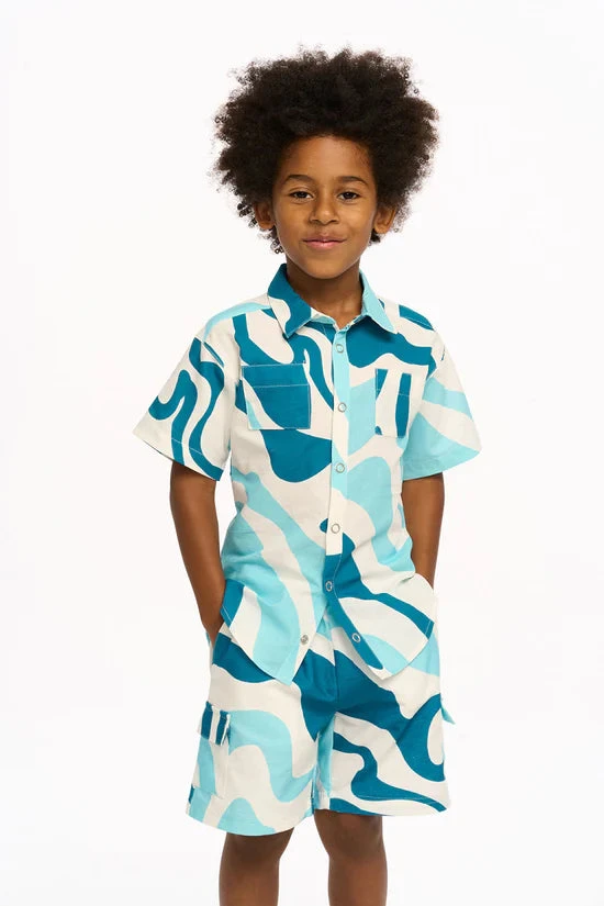 Wave hello to our groovy Boy’s Wavy Stripe Ansel Short Sleeve Shirt. It’s guaranteed good vibes thanks to its rad print and sleek, yet super soft oxford woven fabric that feels like a dream.