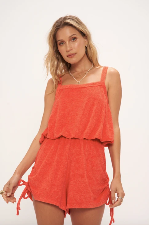 The Runaway Terry Side Tie Short features our super soft terry fabric, an elasticized high waistband, and side ties that create a keyhole detail.