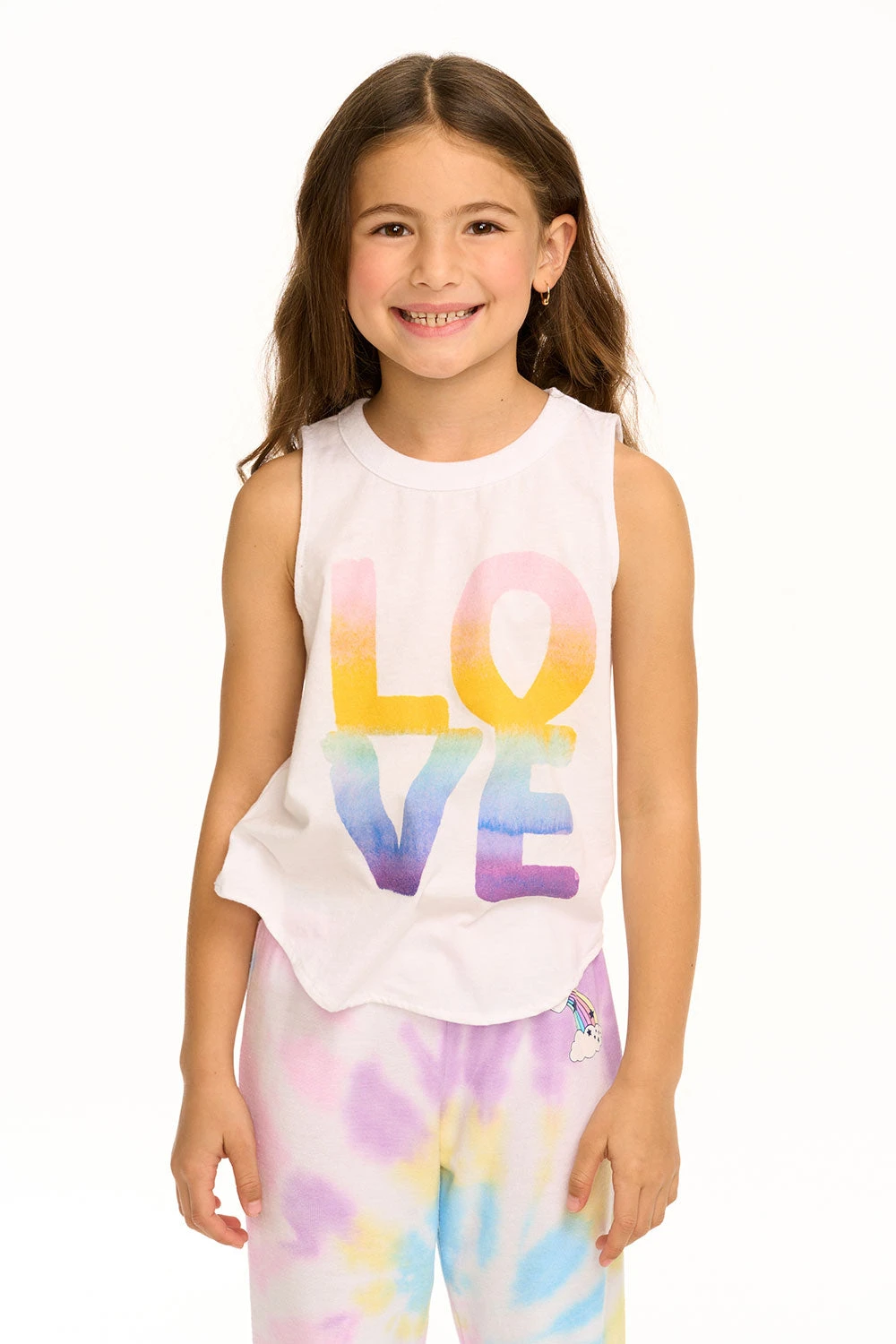Color the world with love in our Girl’s Watercolor Love Muscle Tee in white. Speaking of love, it’s crafted from our eco-friendly jersey which spreads love to the planet too.