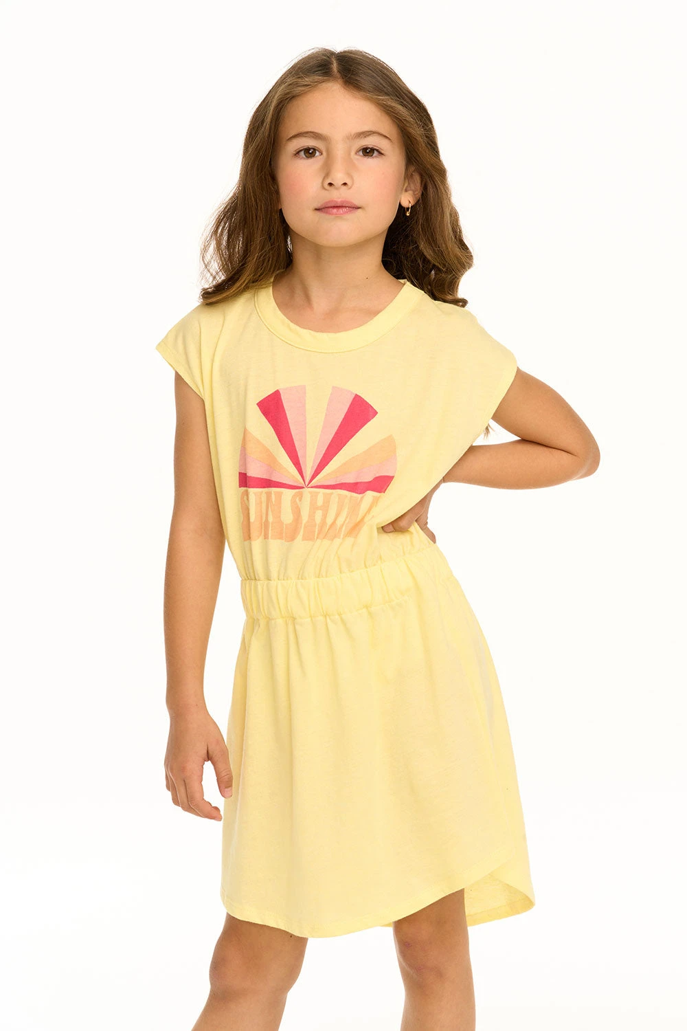 Your little ray of sunshine deserves a bright, sunny day. Leave it to our Girl’s Sunshine Rays Taylor Tank Dress in yellow to do the trick. Designed with stylish details that are guaranteed to light her up: a good-vibes graphic, curved hem, and eco-friendly fabric that does the planet good.